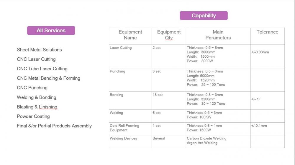 Os serviços de fabricação de chapas personalizadas da FCX oferecem manufatura, engenharia e montagem de metal subcontratado, desde o projeto, soluções até a entrega, desde simples gabinetes de metal, expositores, peças industriais variadas de chapas metálicas, gabinetes de sistemas de TI, mini-armazéns não padronizados a complexos montagens totalmente integradas FCX tem a tecnologia e habilidades para fornecer fabricação de chapas de metal e serviços de usinagem CNC em todos os setores da indústria, que incluem equipamentos de telecomunicações, sistema de energia elétrica, dispositivos de controlador de sinal de tráfego, etc. A capacidade inclui usinagem de chapa metálica, corte a laser, CNC puncionamento, soldagem, revestimento em pó, montagem avançada e muito mais. E com impressionantes instalações internas para subcontratação de chapas metálicas, podemos garantir uma entrega rápida e uma qualidade de produto excepcional.